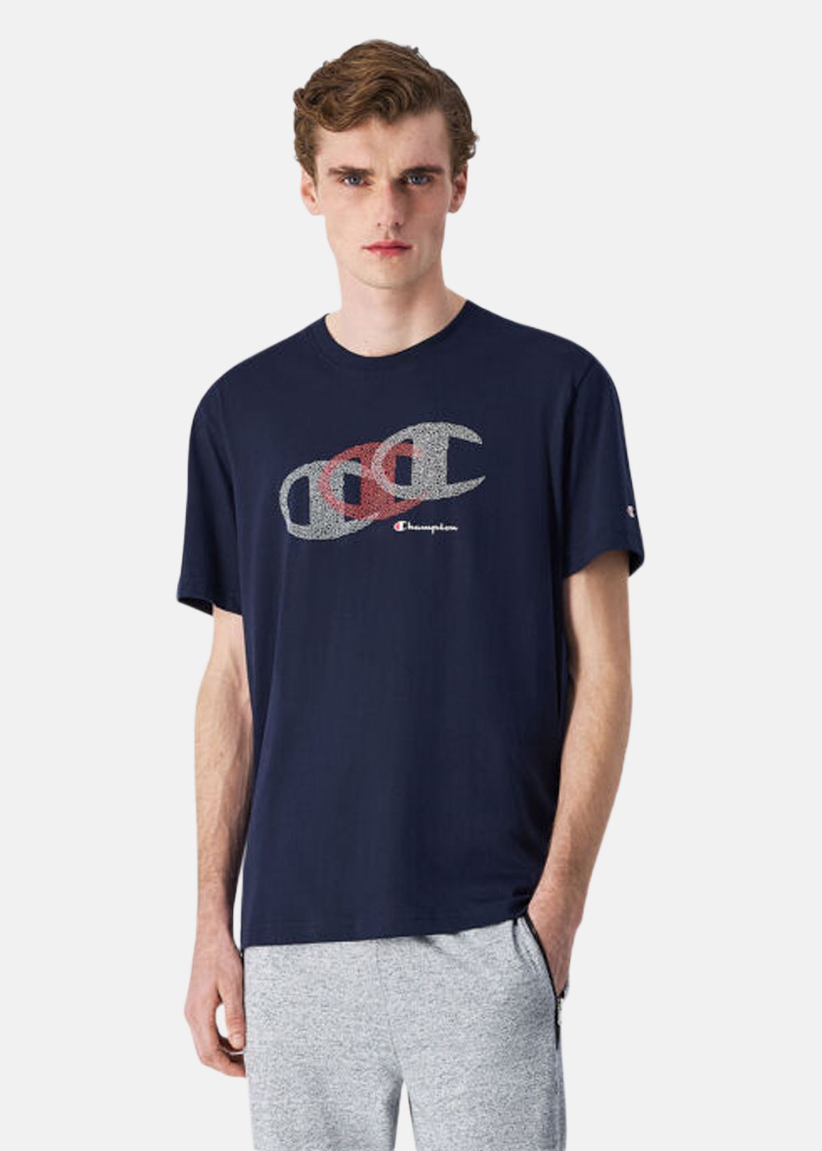 En t-shirt för män från Champion perfekt för vardagsbruk. SS Tee erbjuder komfort.. Stort logotryck . Behagligt material . Rund halsringning . Normal passform . 100% bomull Denna t-shirt erbjuder en klassisk design med ett stort logotryck framtill. Tillverkad av 100% bomull, ger den en bekväm känsla och en normal passform som passar de flesta. Den runda halsringningen kompletterar den tidlösa stilen.Material: 100% bomull